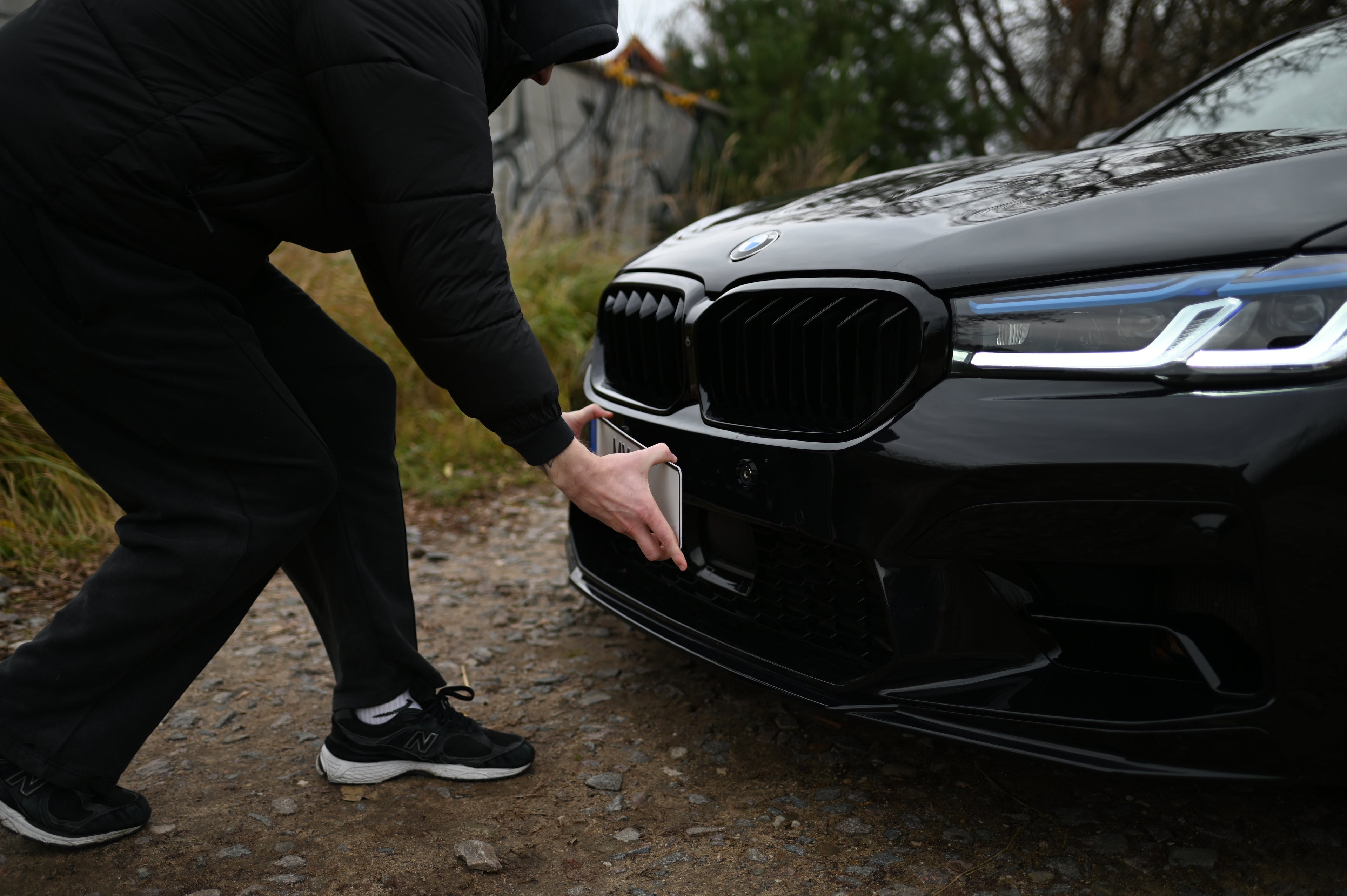 2. Clean the areas on both the car and the license plate where the holders will be attached using the provided wipes.